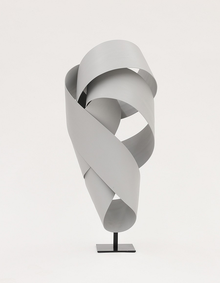 Stained white ash on metal base, 36 x 16 x 16 in.